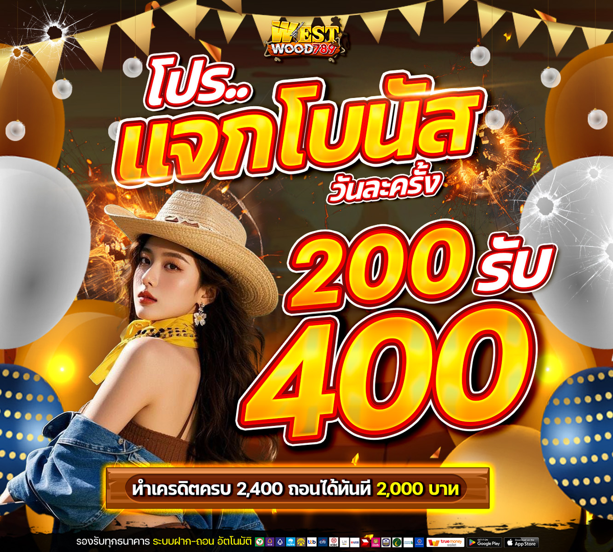 WESTWOOD789🤠 โปรโมชั่นแจกโบนัสวันละครั้ง 200 รับ 400
